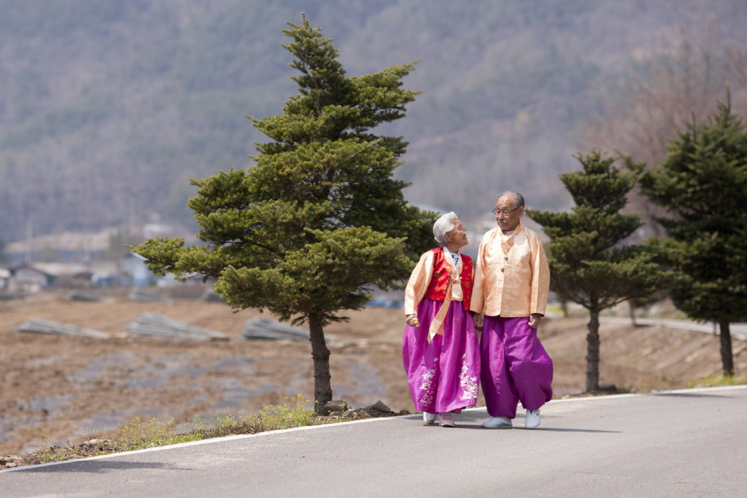 영화는 강원도 횡성의 산골마을, 잉꼬부부로 소문난 89세 소녀 감성 강계열 할머니, 98세 로맨티시스트 조병만 할아버지의 평범하지만 사랑스러운 일상을 보여줍니다. 그들은 어딜 가든 고운 빛깔의 커플 한복을 입고 두 손을 꼭 잡고 걷는 노부부입니다. 봄에는 꽃을 꺾어 서로의 머리에 꽂아주고, 여름엔 개울가에서 물장구를 치고, 가을엔 낙엽을 던지며 장난을 치고, 겨울에는 눈싸움을 하는 매일이 신혼 같은 백발의 노부부를 다정한 눈길로 따스하게 비춥니다. 서로를 의지하며 살던 어느 날, 할아버지가 귀여워하던 강아지 꼬마가 갑자기 세상을 떠납니다. 꼬마를 묻고 함께 집으로 돌아온 이후부터 할아버지의 기력은 점점 약해져 가고, 밤새 기침에 시달리는 날이 많아집니다. 할머니는 할아버지와 수시로 건너던 강을 바라보며 머지않아 다가올 이별을 생각하게 됩니다.